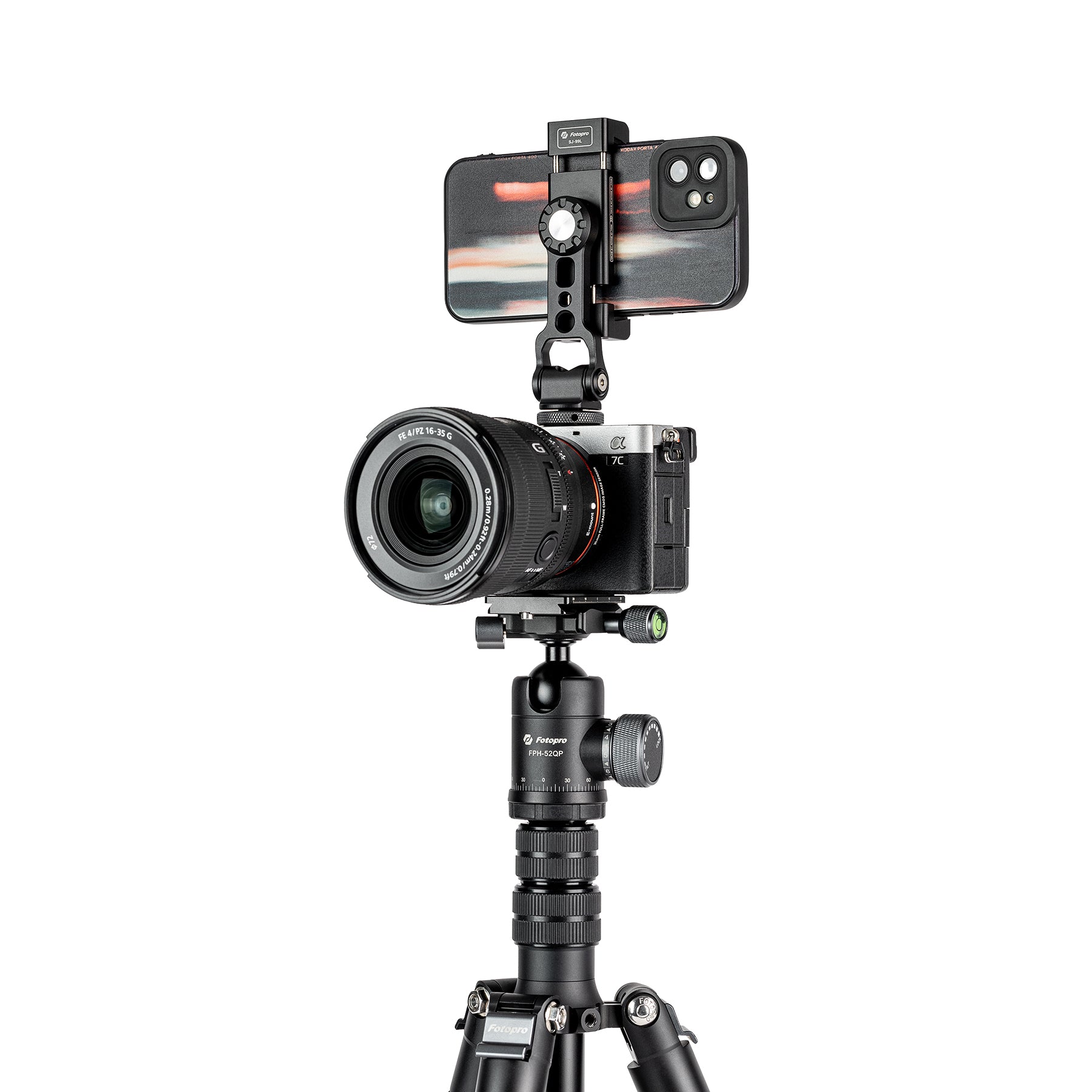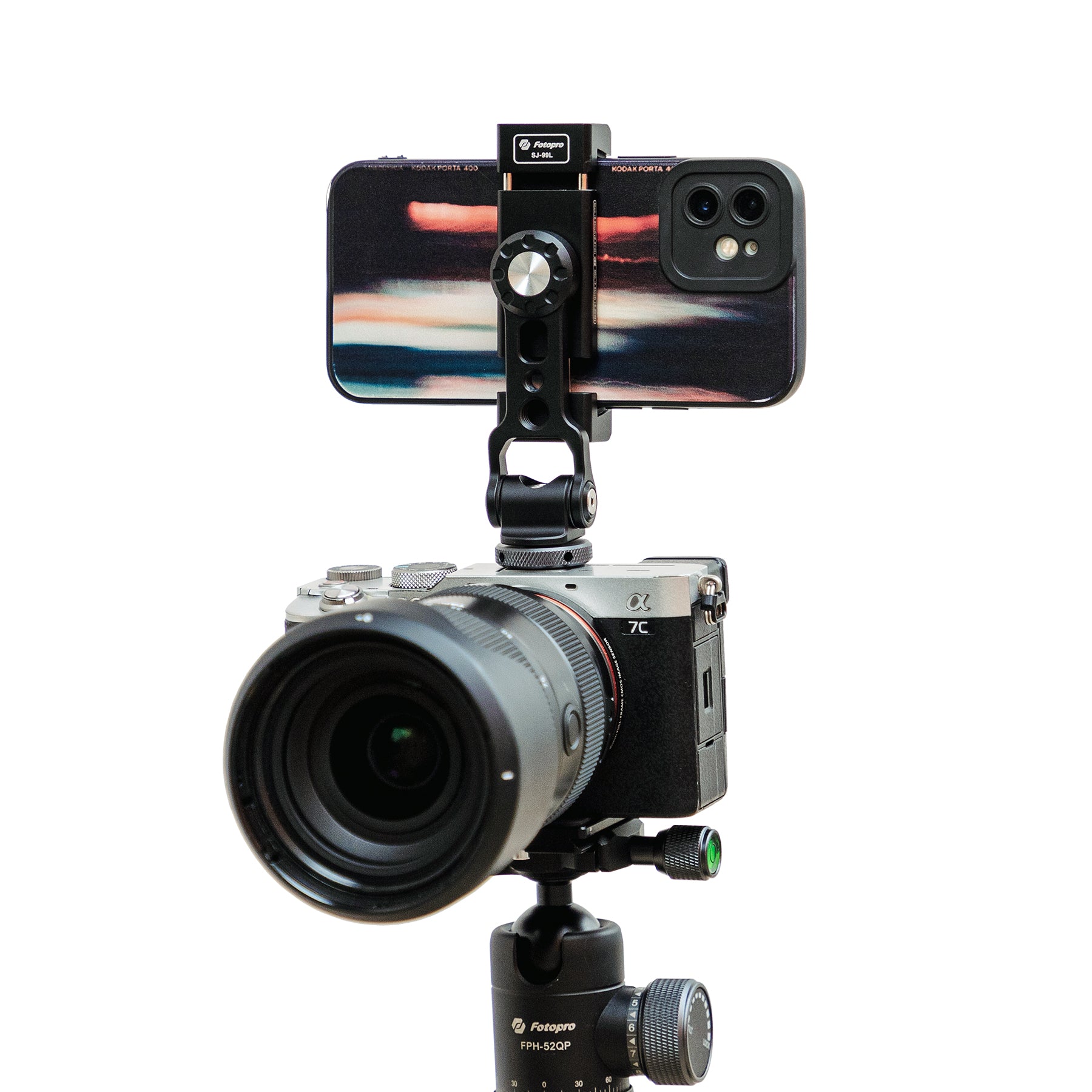 SJ-99L アルミ製スマホホルダーにはarca-swissと1/4ネジコネクタが搭載されており、接続が簡単です。