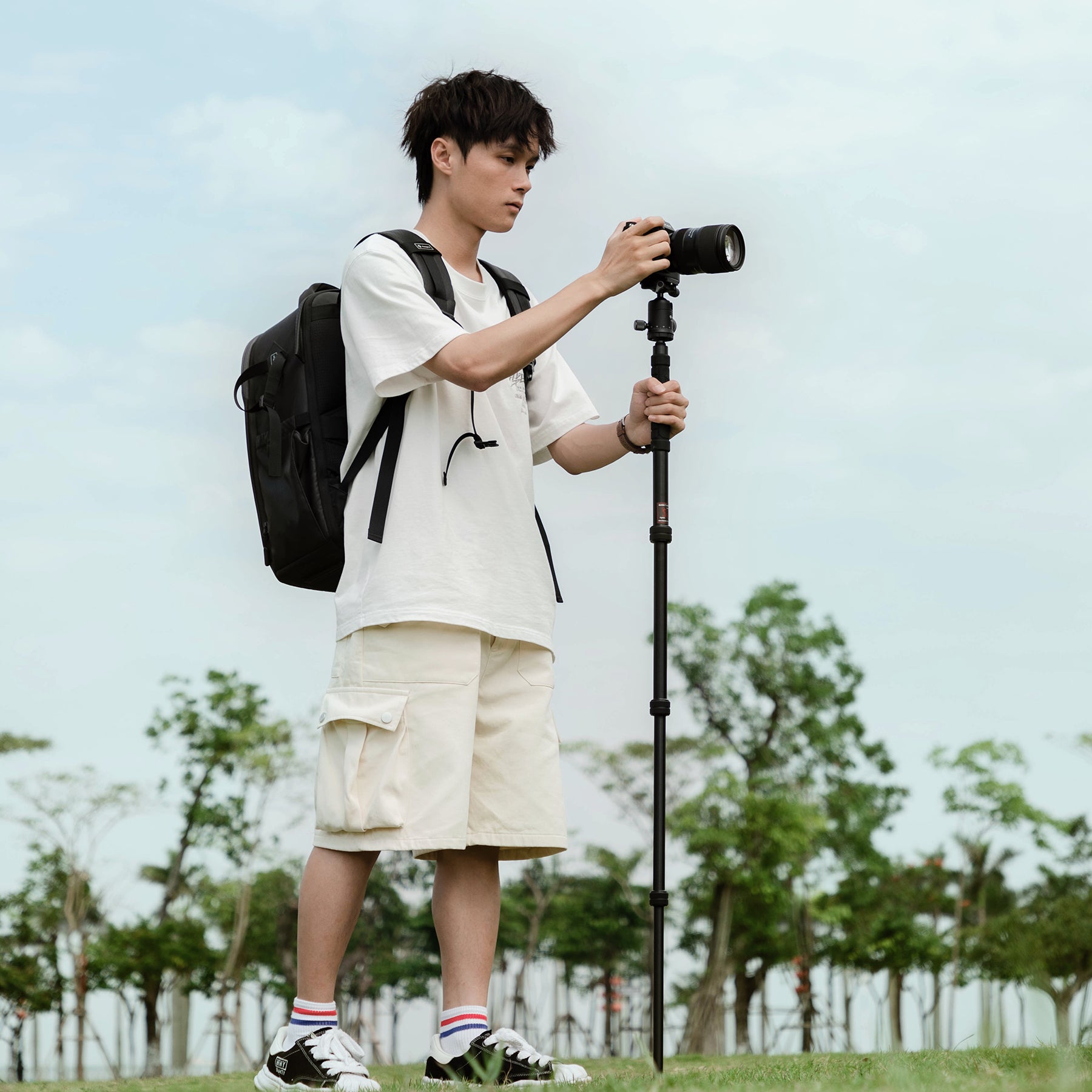 X-go Chameleon E 2にはダブルアクションボールヘッドが付いています。軽量で持ち運びや保管に便利で、アウトドアでの使用に最適です。